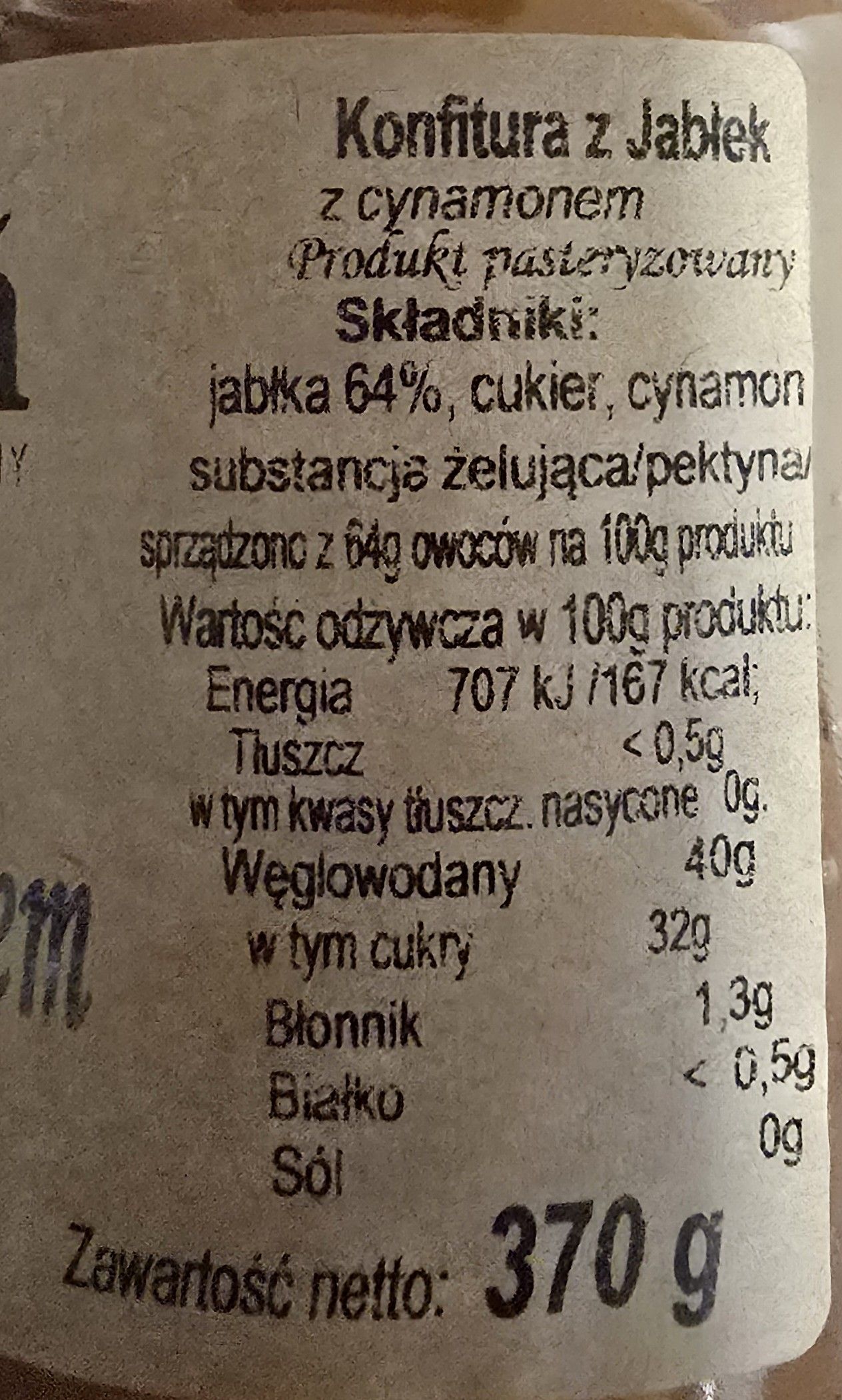 KOMFITURA JABŁKO Z CYNAMONEM 370 g